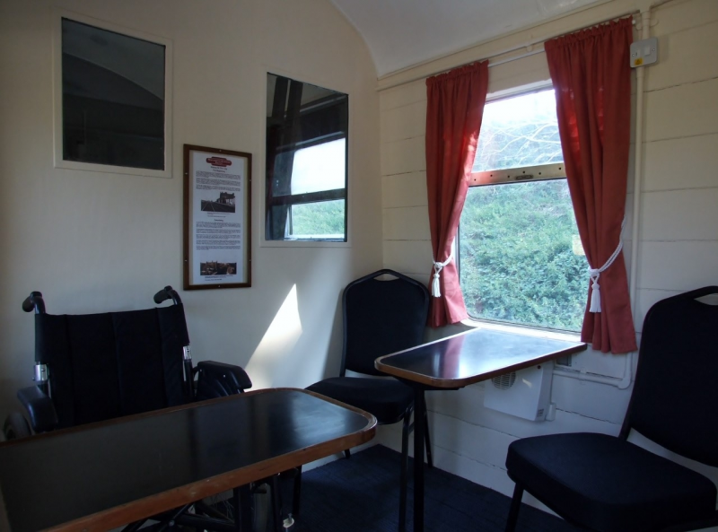 The Accessibility Compartment can accommodate 1 wheelchair and 2 Companions/Carers or 3 persons seated with no wheelchair. Please contact enquiries@nlr.org.uk if you require any help.